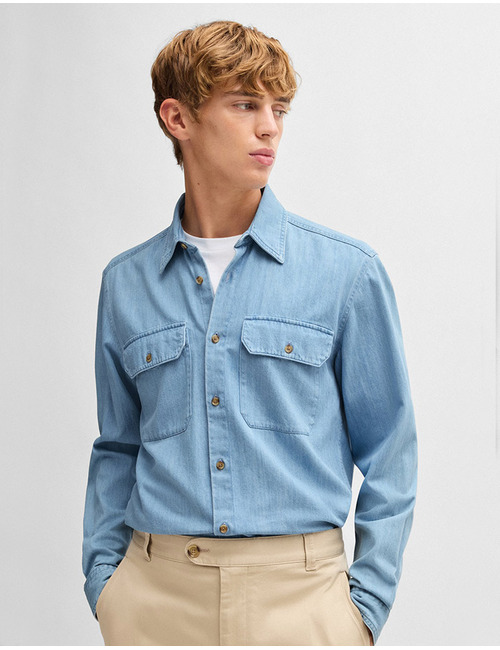 Gestreept slim fit overhemd in katoen twill met easy-care afwerking