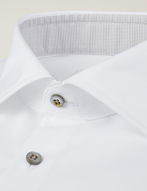 Regular Fit wit twill overhemd met contrastdetails en grijze parelmoer knopen