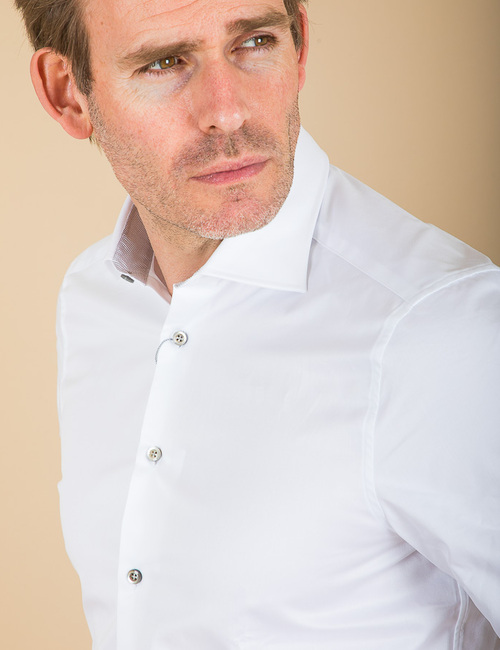 Slimline wit twill overhemd met contrastkraag en grijze parelmoer knopen