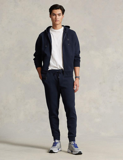 Double-knit hoodie met volledige rits