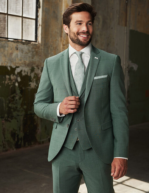 Dit stijlvolle driedelige kostuum van Immediate is uitgevoerd in een unieke groene tint die elegantie en originaliteit uitstraalt. Dankzij de slim fit pasvorm sluit het mooi aan op het lichaam. Het ton-sur-ton gilet en de bijpassende das zorgen voor een verfijnde, complete look. De lichte stretch in de stof verhoogt het draagcomfort.