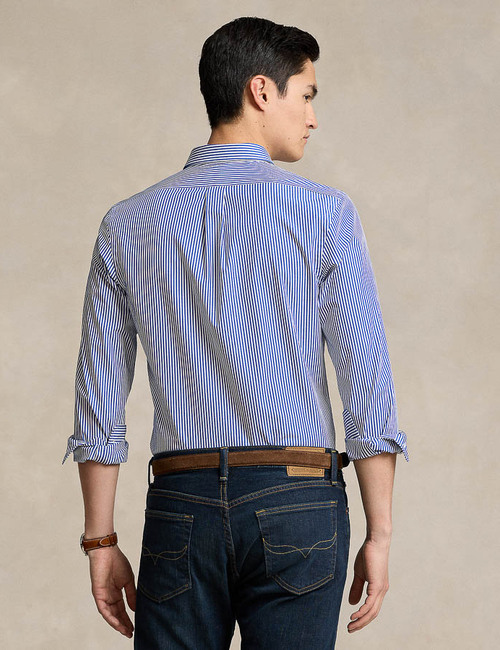Slim fit gestreept stretch poplin hemd