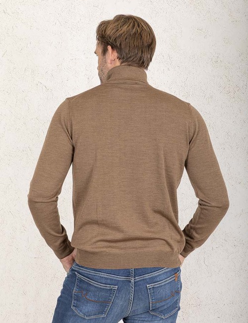 Deze coltrui is gemaakt van merinowol en afgewerkt met een geribbelde kraag, manchetten en zoom.
