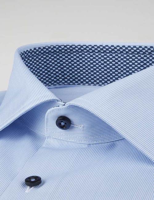 Slimline Blauw fijn gestreept hemd twofold super cotton
