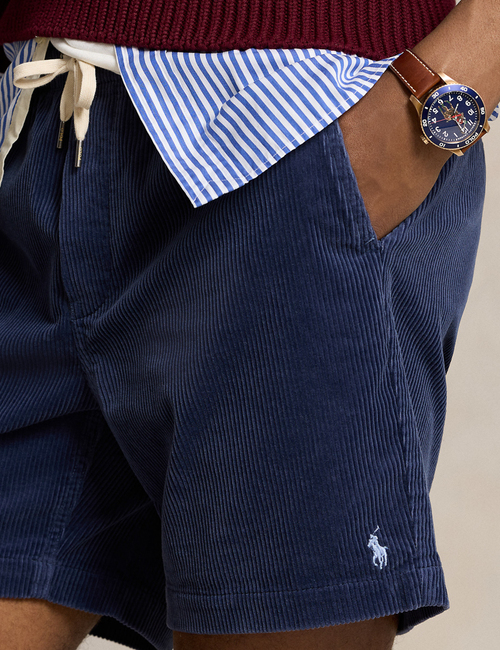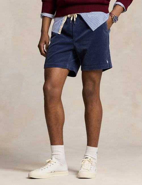 Deze 6-inch Prepster short in boston navy is een moderne herinterpretatie van een klassiek Polo-archiefmodel. Gemaakt van 100% katoenen ribfluweel (corduroy) en afgewerkt met een elastische tailleband en trekkoord voor optimaal draagcomfort. De zachte ribstructuur geeft de short een tijdloze, traditionele uitstraling.